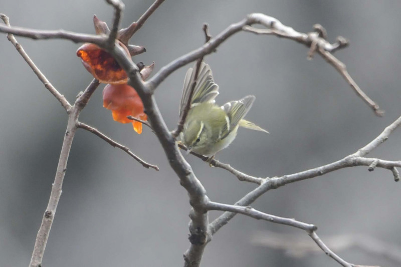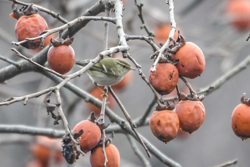 柿の実の近くで