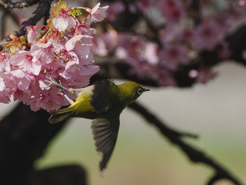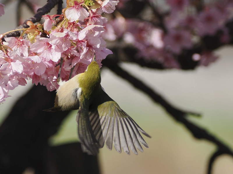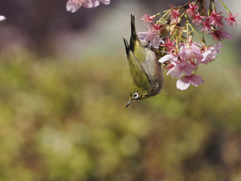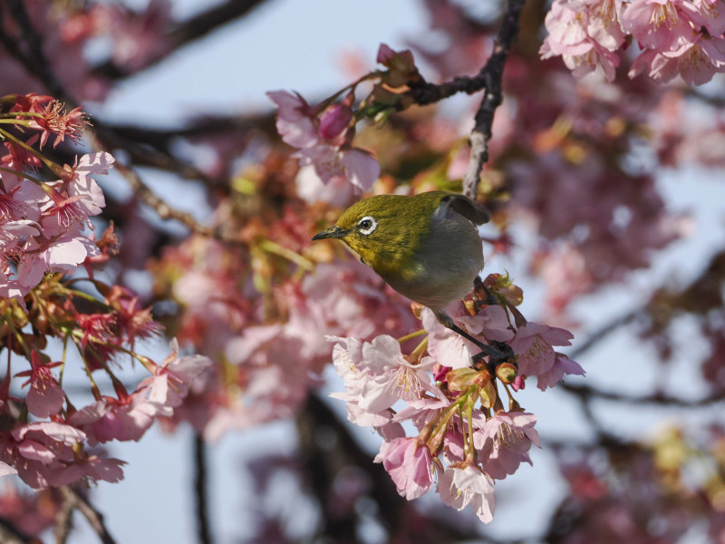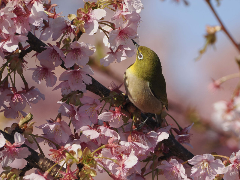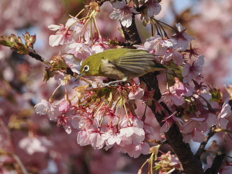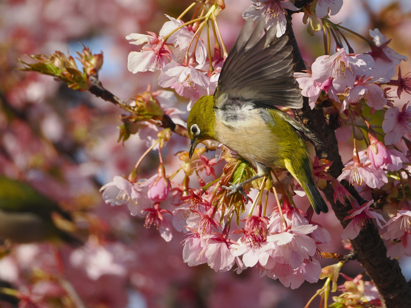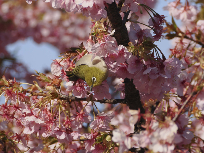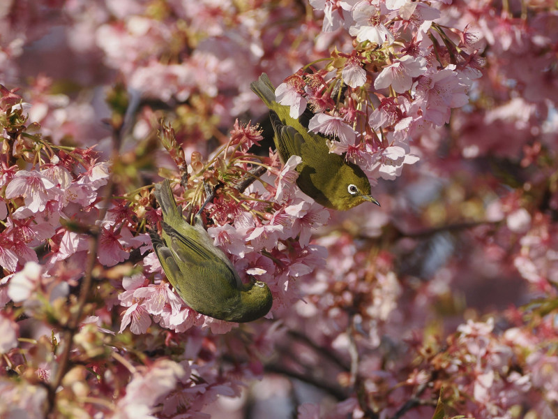 桜とメジロです。