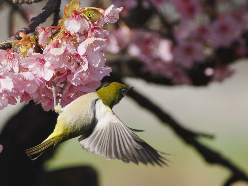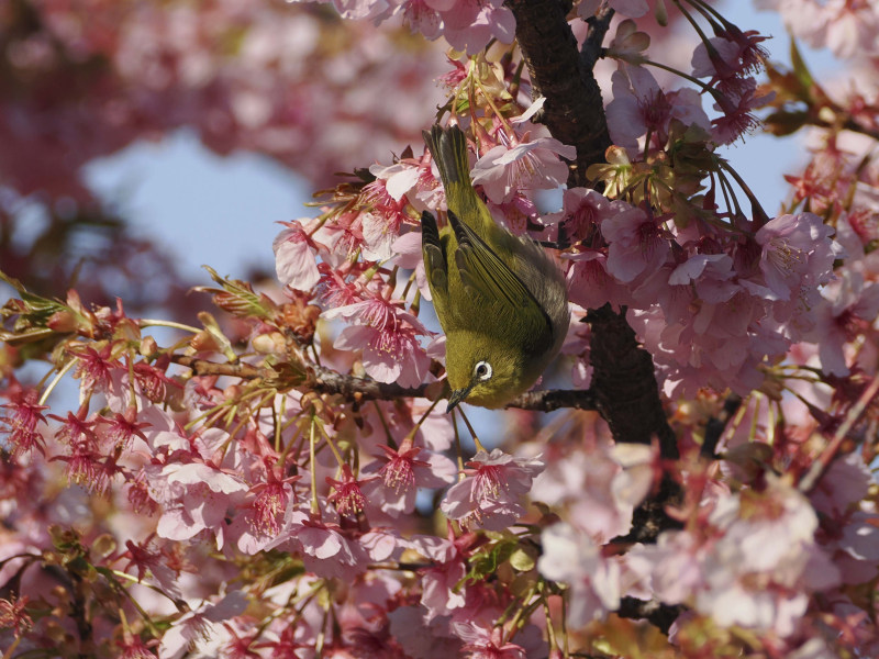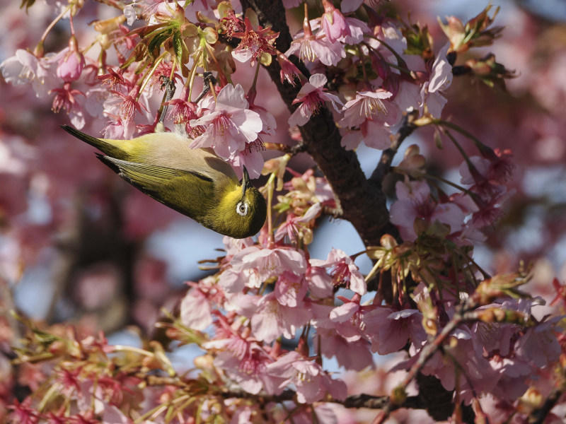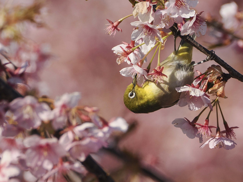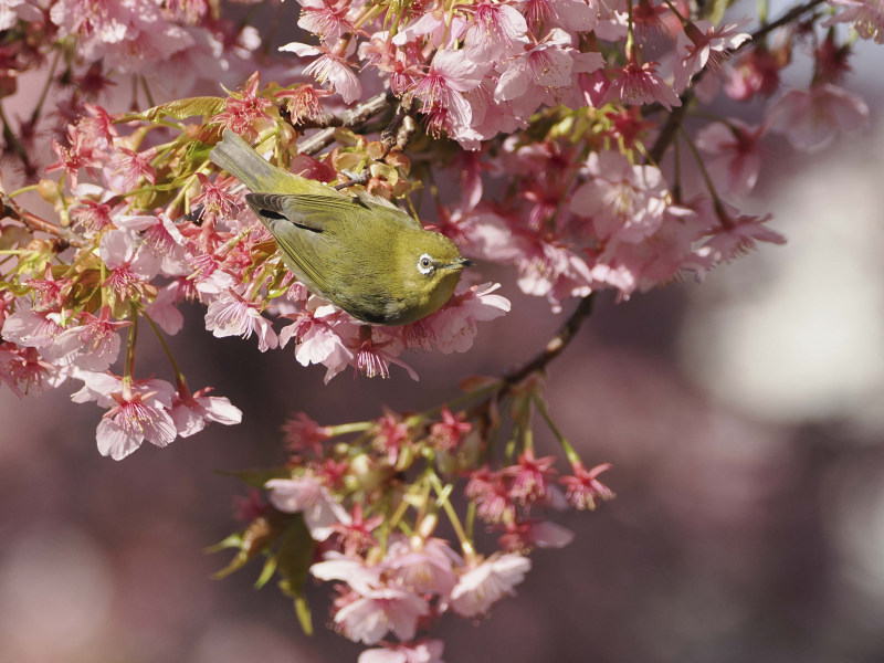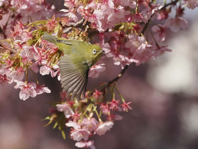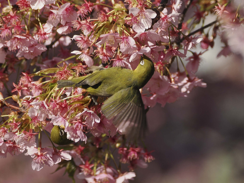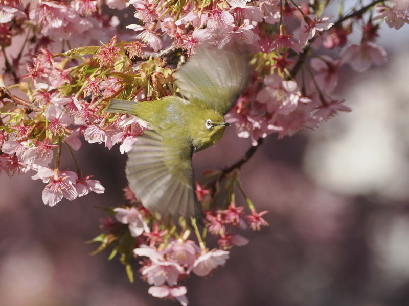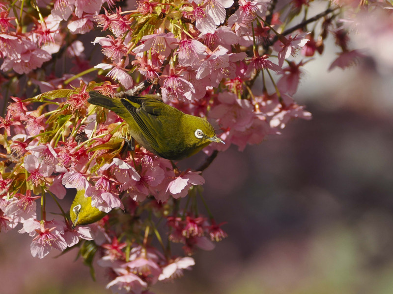 桜とメジロです。